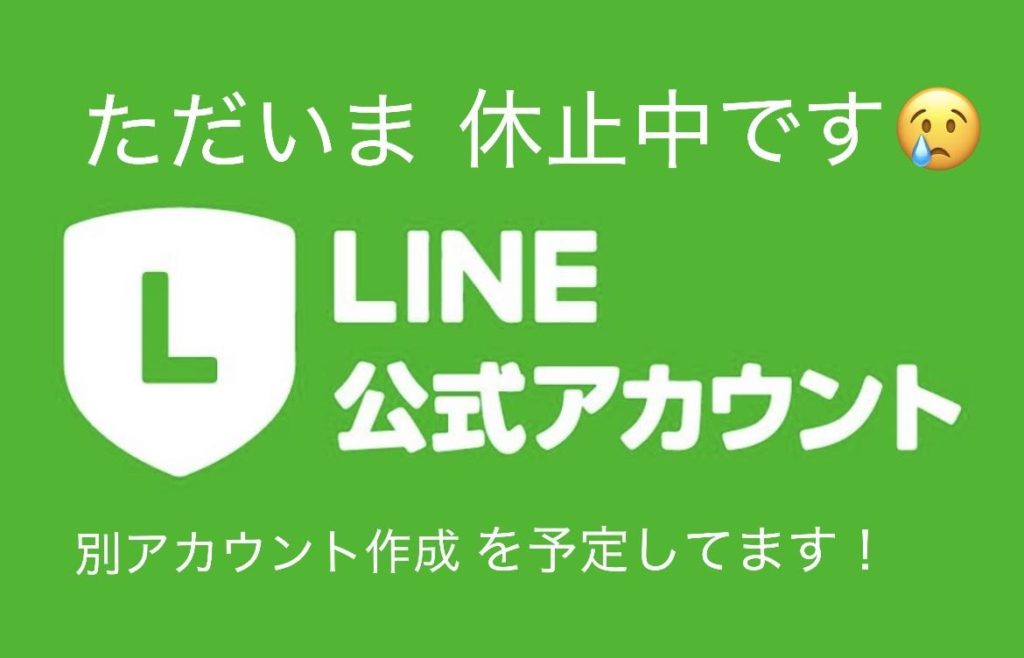 ただいま公式LINEが休止していてLINEを送信して頂いても、こちらで確認できなくなっております😥