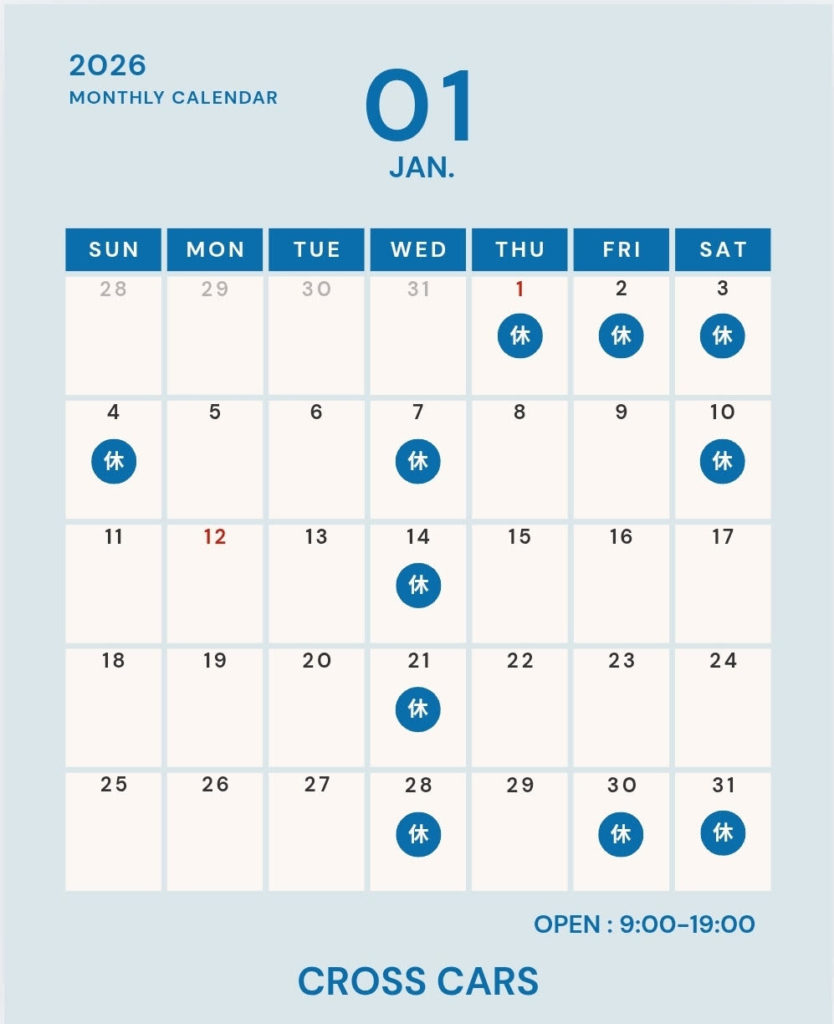 HOME > ブログ > スタッフブログ > スタッフブログ ブログ 2026年 1月 営業日のお知らせ🎍 2025年12月31日 1月の営業日のお知らせです🎍 12月27日(土)~1月4日(日)は休業です 1月の臨時休業は 10日(土)・30日(金)・31日(土) です 定休日は 水曜日です!! ご迷惑をおかけしますがよろしくお願いいたします😊 Twitter Share Pocket Hatena LINE コピーする